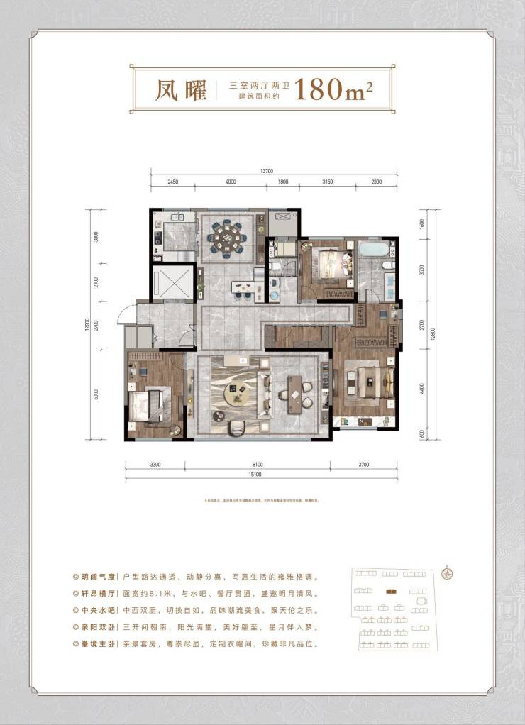 主力户型:舒心三房约140㎡/阔绰三房约160㎡/奢适三房约180㎡