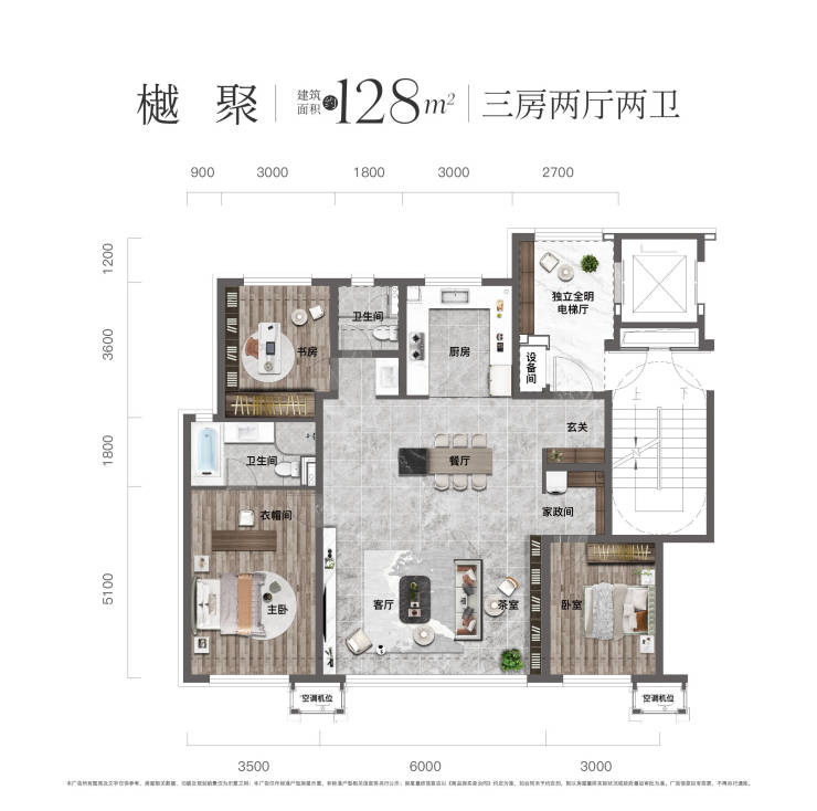 樾聚 | 建筑面积约128㎡ 舒适三居 3房2厅2卫