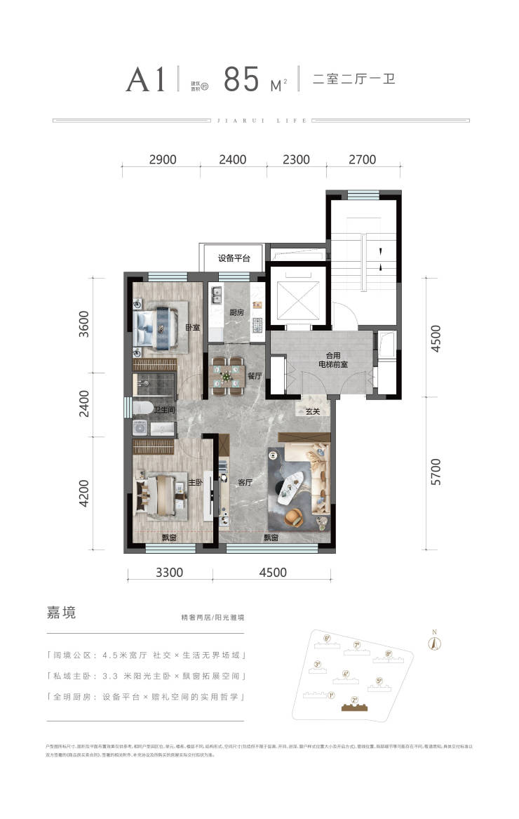 1、A1(85㎡ 两室两厅一卫):