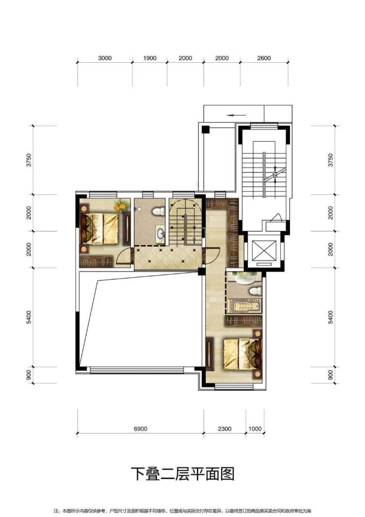 2.下叠赠送花园露台、车库、车位等超大面积,上叠赠送露台、车库、车位以及超多创意空间