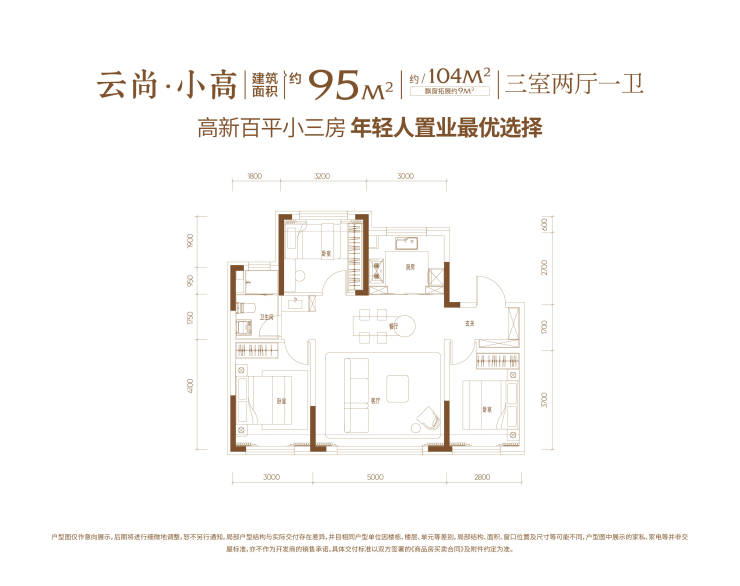 面积段:约95㎡三室/约110㎡三室/约125㎡四室