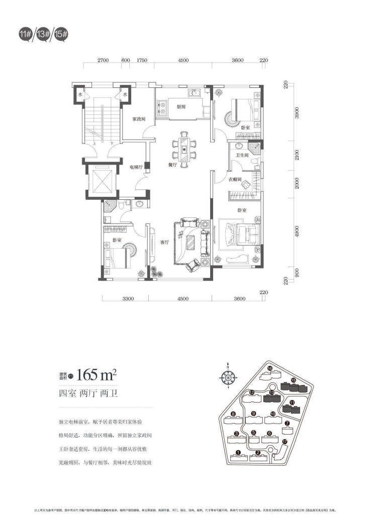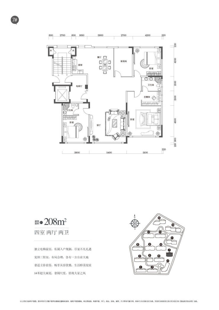 1、平层145-165-172-183-192-208㎡ 飞机户型 贯通梯 均价11000元/㎡