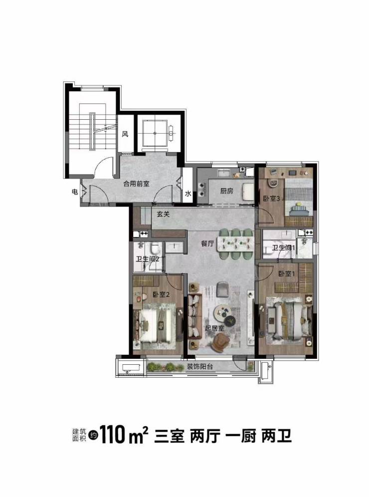 臻选好户型——110㎡房源较比同类三室两卫节省10-20平面积,同样的户型极致的改善