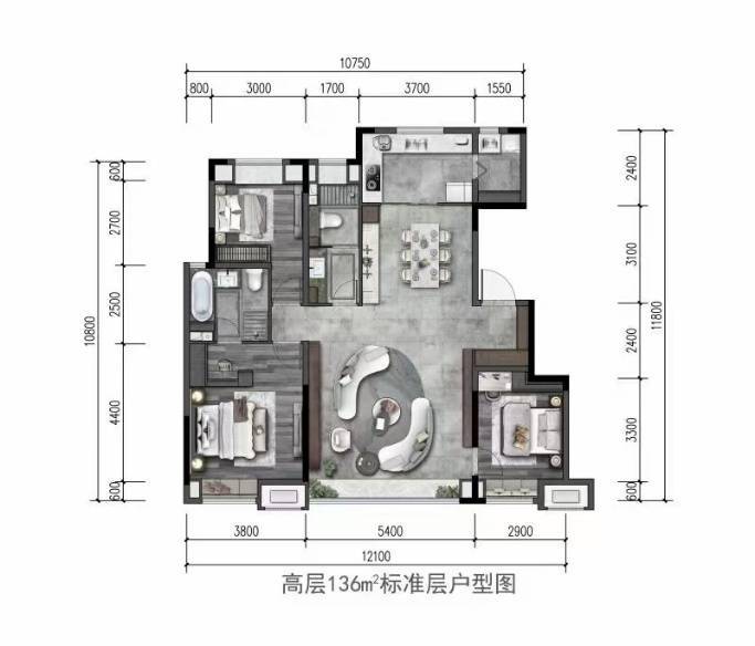 【产品户型】:85㎡二室一卫 105㎡三室一卫 128㎡三室二卫 136㎡三室二卫 162㎡四室两卫 顶跃220㎡,底跃350㎡。