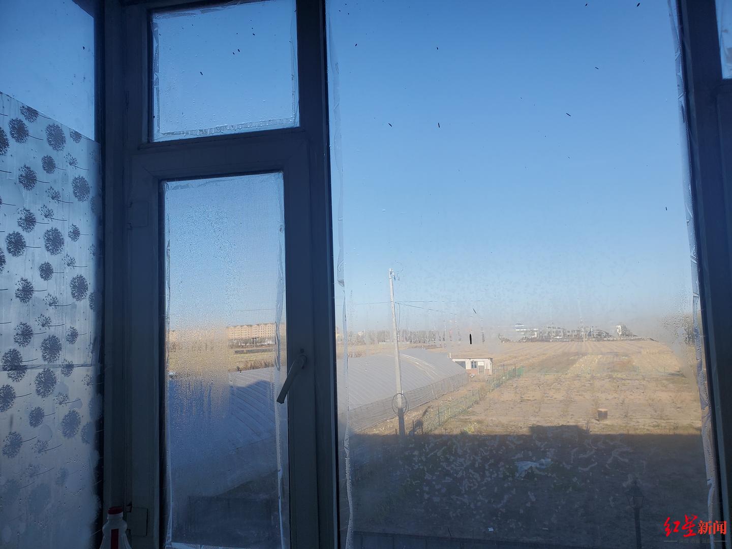 ▲居民在室内窗户上粘贴胶带用于防风保暖