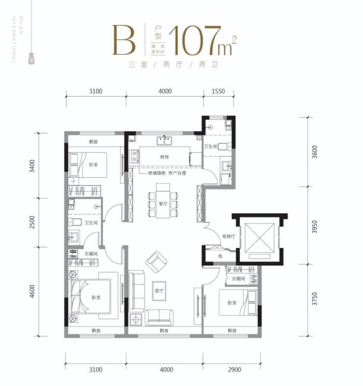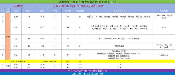 三期B地块 一共7栋楼在售,1-4-6-7全部为107㎡三室两厅两卫产品,2-3栋为96㎡三室两厅两卫产品,5栋为117㎡四室两厅两卫产品