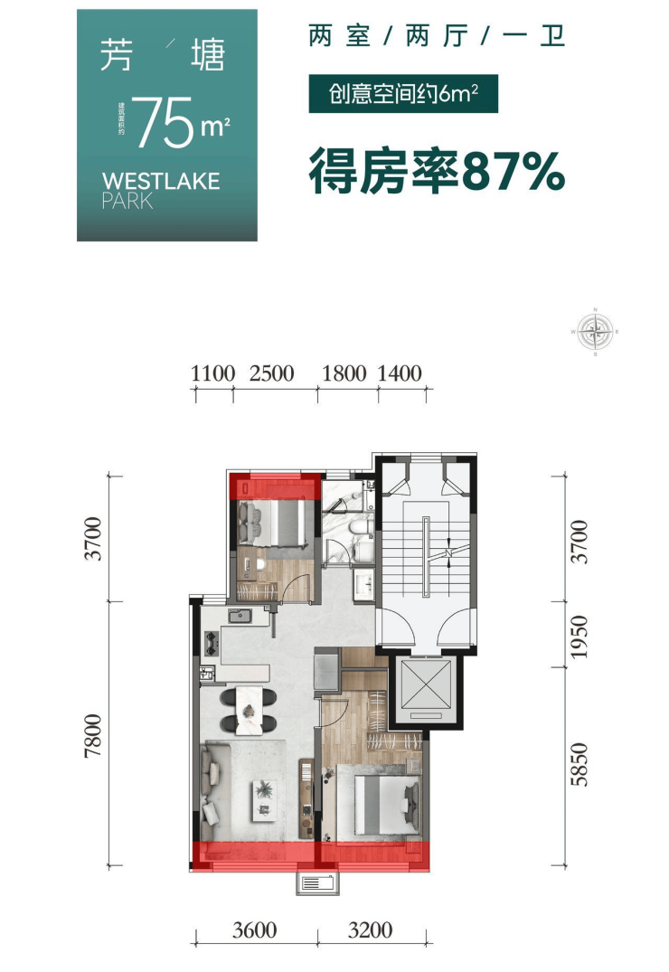 #6栋(11顶)【一楼带约30㎡花园】面积:75平