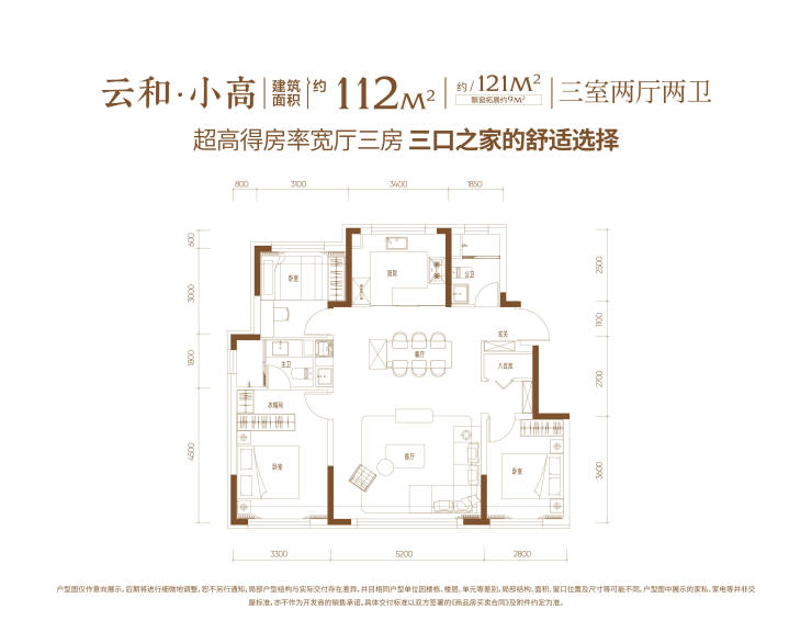 面积段:约95㎡三室/约110㎡三室/约125㎡四室