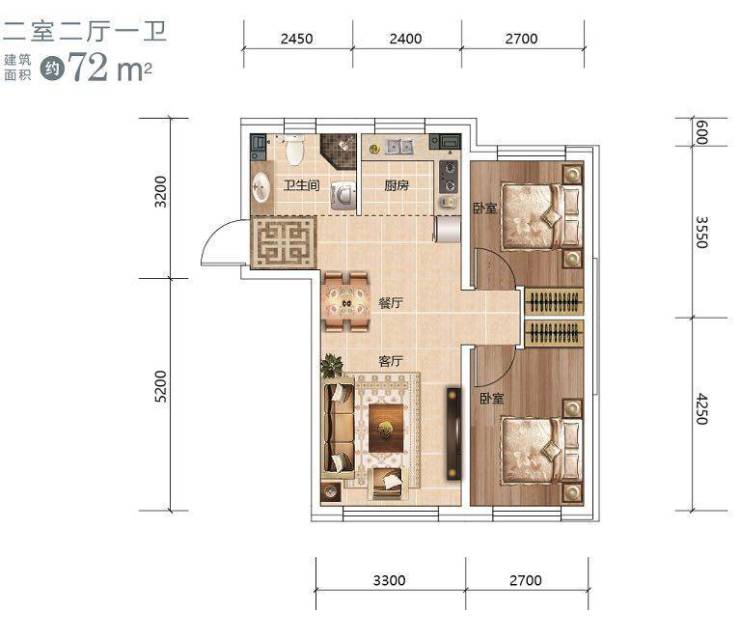 『70多平南北通透!两室两厅、全明户型』