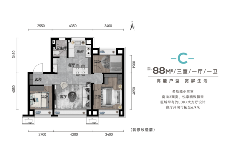 24H活力园林,区域罕见户型,88平宽厅可达6.9米