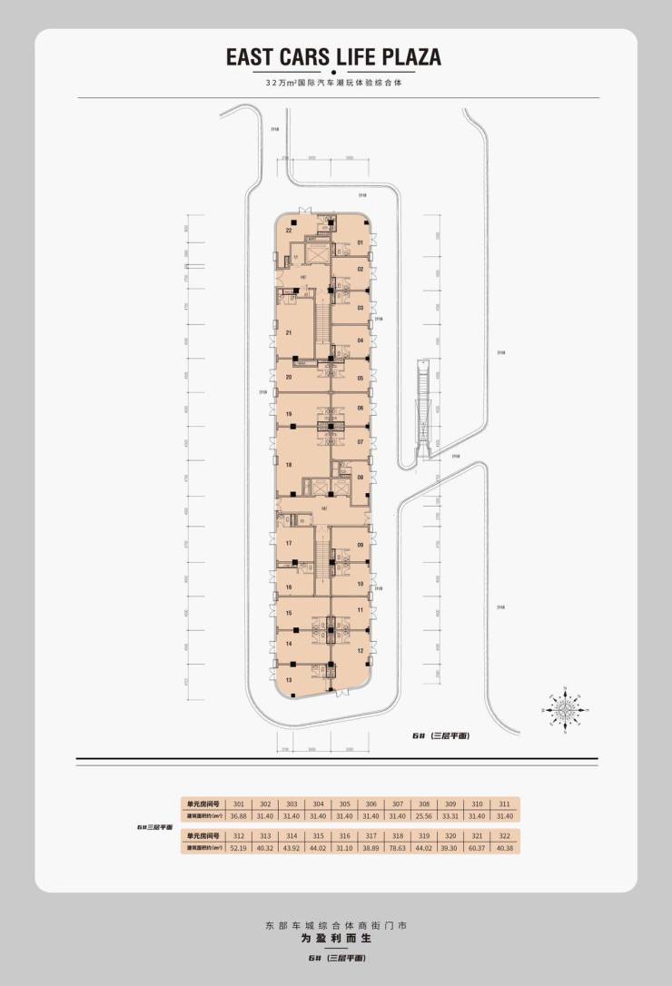3、9栋开放式商街门市,共计408 套,总层数为3-4层,建筑面积约25-270m²之间,主力面积40-100平方米,层高4.5 米,开间以 4.5 米为主,进深8-12 米为主。