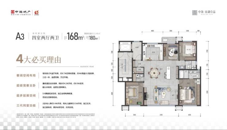 仅8栋洋房+1栋花园小高规划,只为城市少量人群定制;在充分客户调研基础上,研磨产品,尺度空间更舒适(开间进深尺度适宜)、功能布局更合理(保证居住、生活、面客、家庭活动、收藏、个性化需求)等各空间尺度的舒适性;同时延续中海首创的墅级顶底跃墅产品,只为改善城央居住新需求。