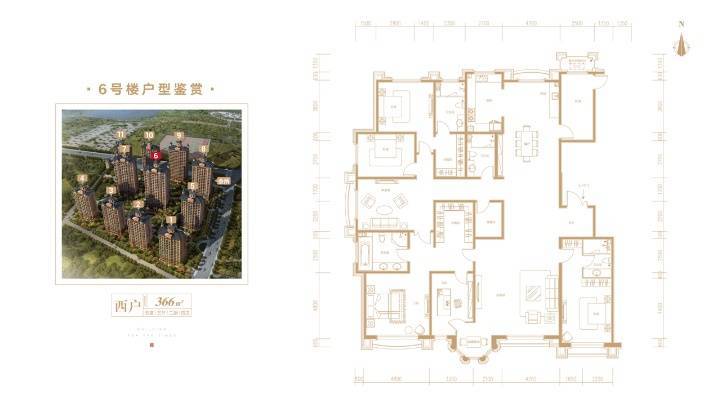 366㎡(六室三厅四卫)多楼层可选,6号楼王西户