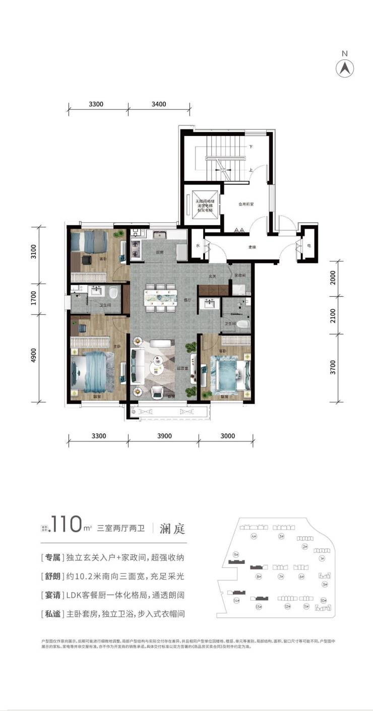 典藏级精—— 110㎡房源较比同类户型节省10-20平面积,同样的户型极致的改善