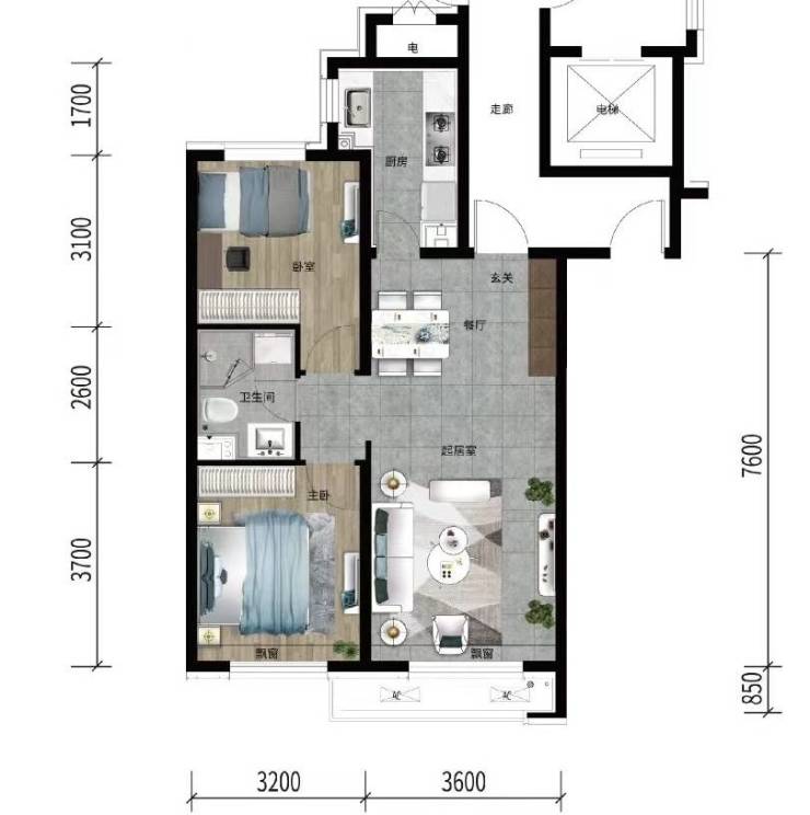 85㎡两室两厅一卫