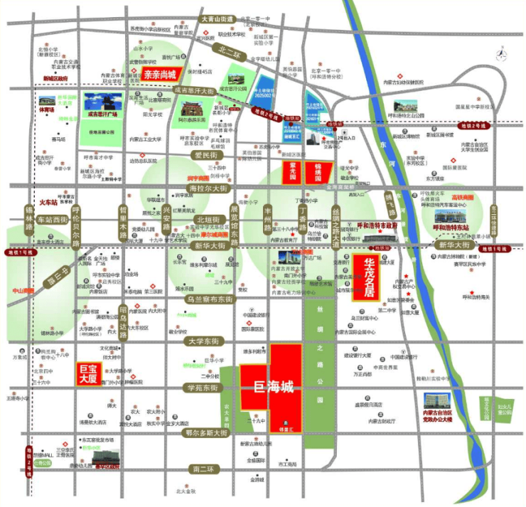 巨华·锦绣园项目位于呼市新城区二环内海拉尔东街与丁香路交汇处。