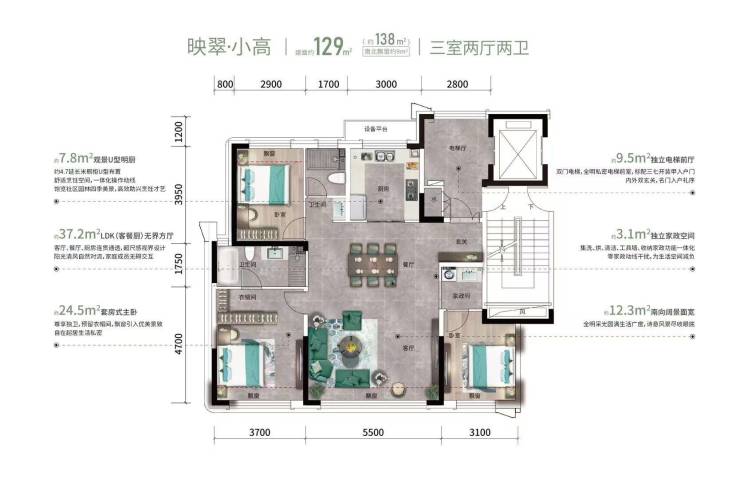 占地面积:地块4.5万㎡,建筑面积约6.8万㎡,容积率1.49,绿化率37%