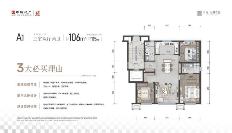 隐奢洋房:106㎡、132㎡、168㎡