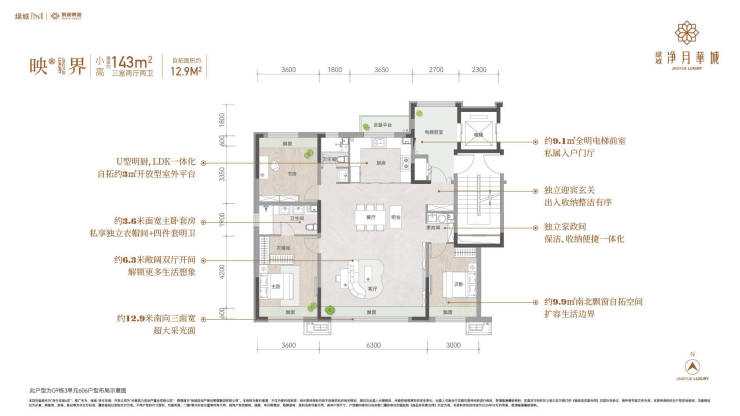 2.1+N 宽厅6大模式:酒店式套房+家政清洁三件套(电梯前室、入户玄关、家政间) +超幅自拓空间,重塑宽境舒居